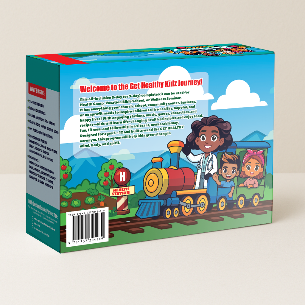 A complete kids’ health curriculum kit designed for churches, schools, and community programs. Teach children faith-based wellness using fun activities, flash cards, and interactive health stations. Get Healthy Kidz Kit includes director's manual, instructor booklets, theme song, lesson plans, and certificates. Ideal for VBS, summer camps, and after-school programs.